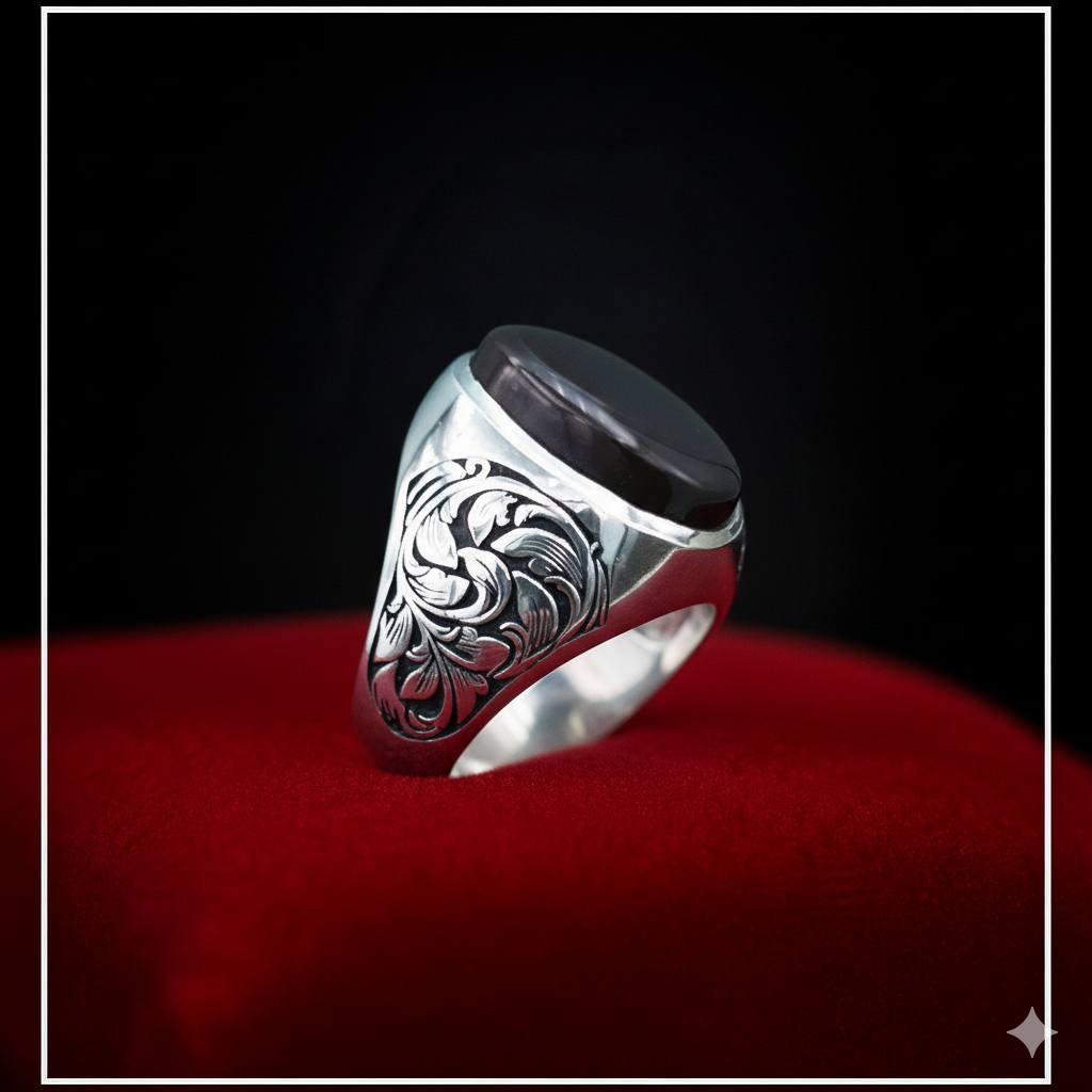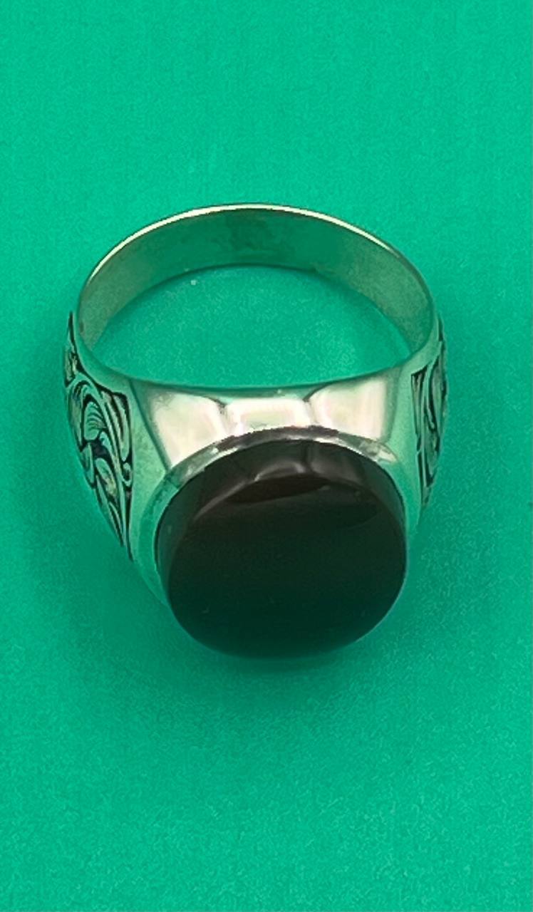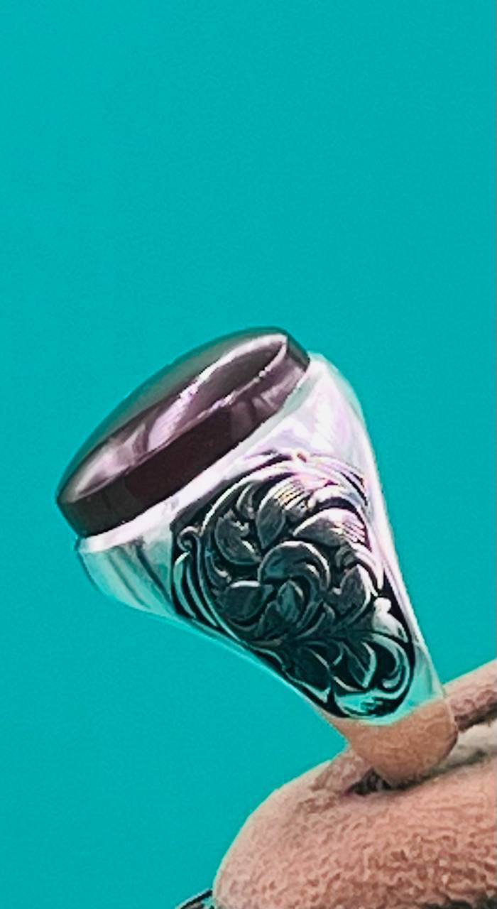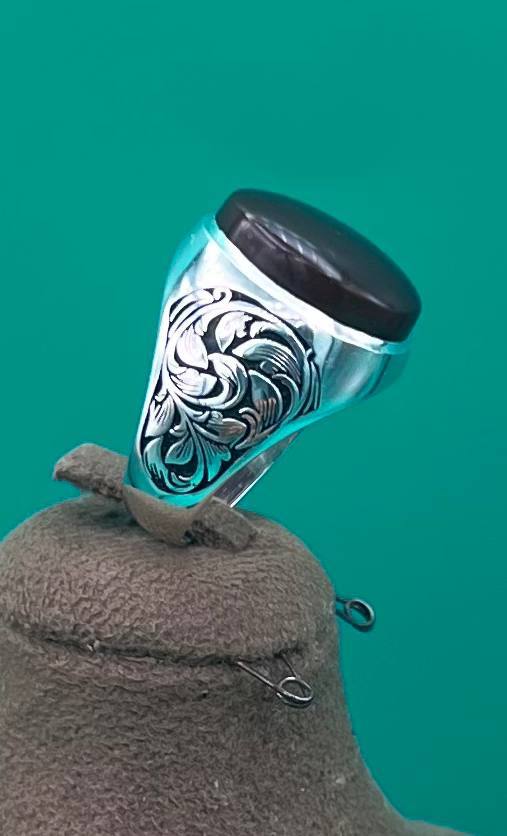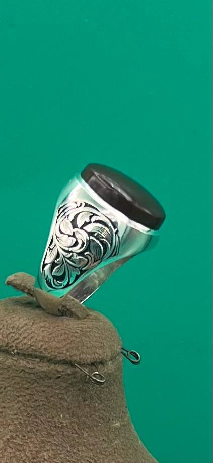 انگشتر مردانه عقیق سرخ یمنی رکاب دست ساز می باشد و همچنین قلمکاری شده