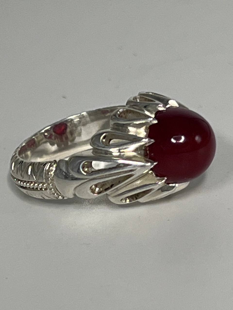 انگشتر مردانه نقره 925 هشت ترک دست ساز توسط استاد کاوه نگین عقیق یمن